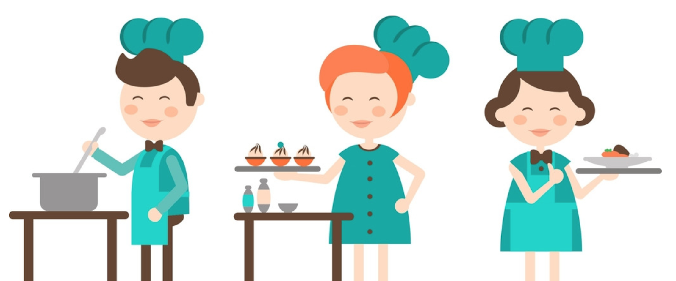 服务员的主要职责:切菜,上菜,收拾桌子。