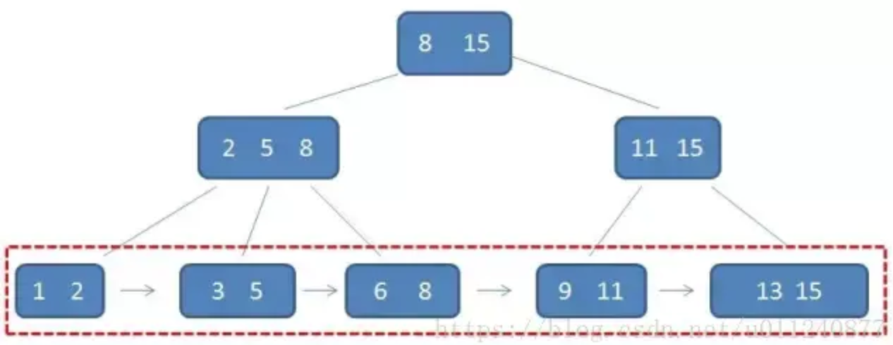 - 所有叶子结点都在同一层,叶子结点有指针指向兄弟结点 - 真正干活的只有底层,且底层团结一致